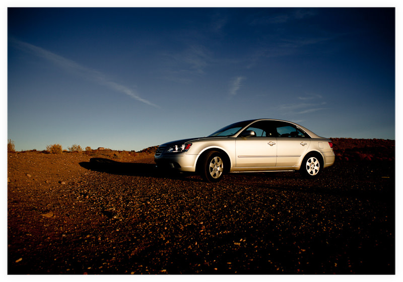 Just as the sun connects with the distant horizon the sky is washed in warmth |