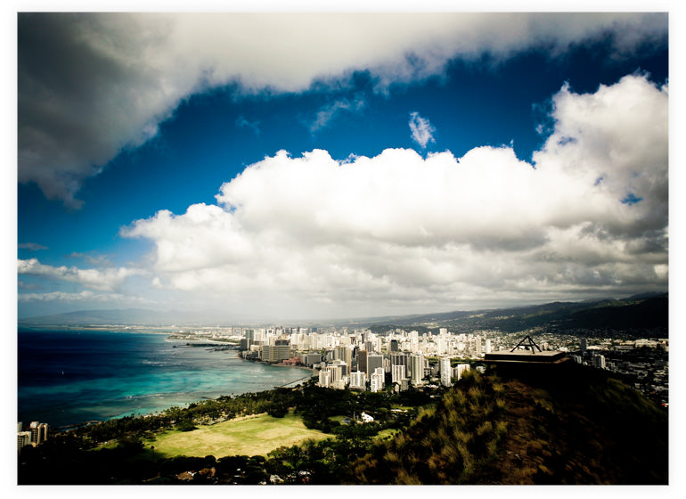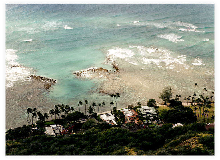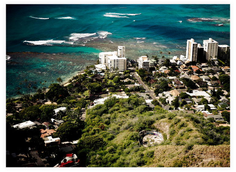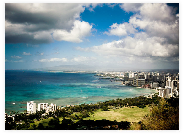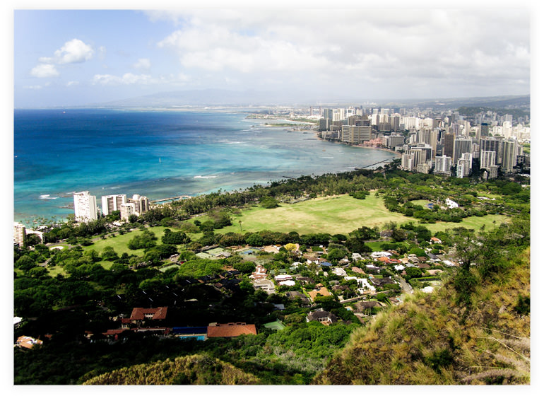 An amazing stretch of beach as Waikiki hits the Pacific, Kapiolani Park in the foreground |